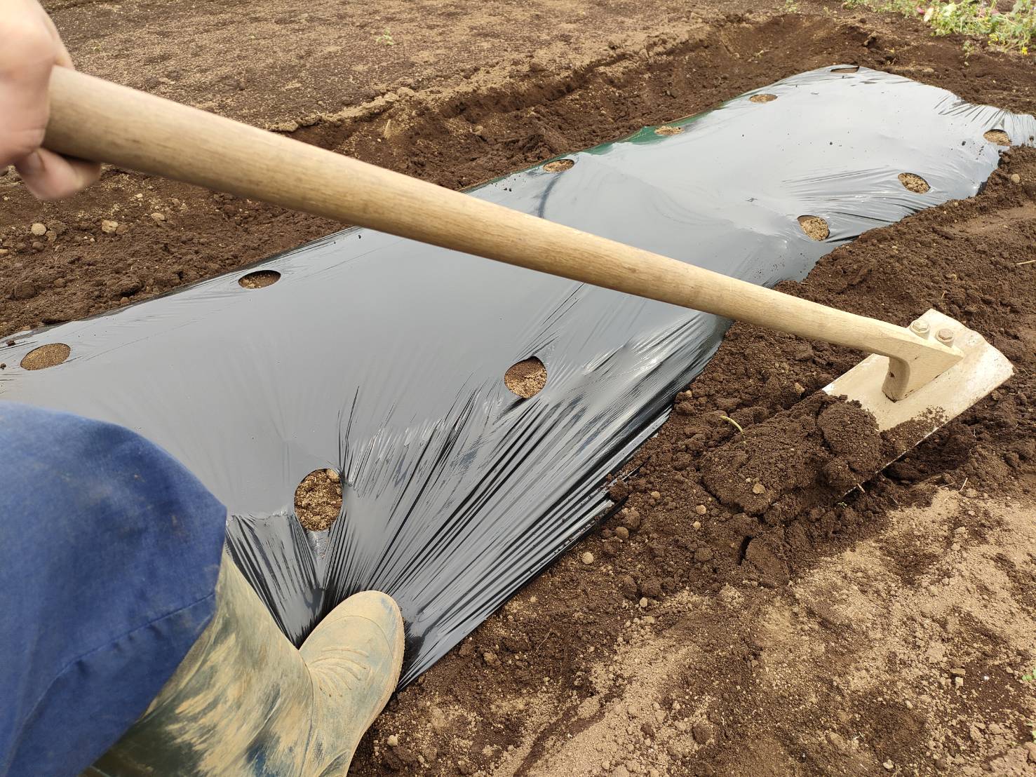 12月植えの場合は、黒マルチ+不織布の“二重の保温”が理想的です。